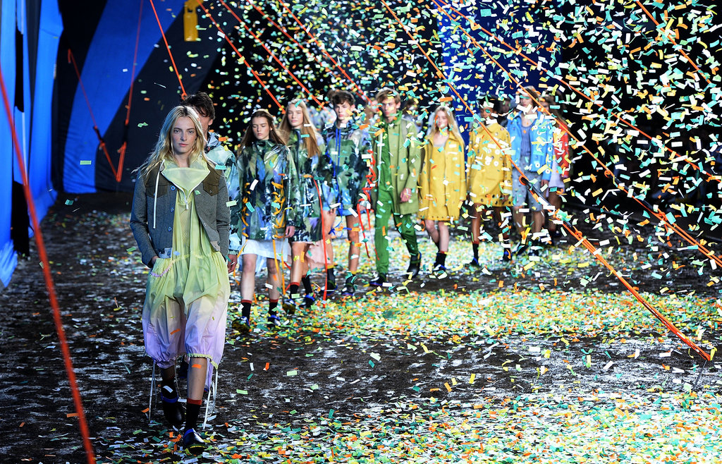 There’s something about the duo of Peter Pilotto and Christopher de Vos when they create a new collection for the brand; they are able to perfectly mesh the sweet and pretty with enough edge and modernity in it to make the entire collection completely covetable. This season, they and us, fell in love with Chantilly lace, and they really used metres of it, draping it around their models in the usual Peter Pilotto pencil skirt and layering it up for a ruffled effect. The collection also had a sporty aesthetic to it, mixing smocks with athletic pieces such as their carwash pleat skirts and lace bomber jackets. The colours were all about springtime pastels, mixing sky blue with a hazy lemon and it was topped off with the brand’s first footwear collection that perfectly matched their clothes.