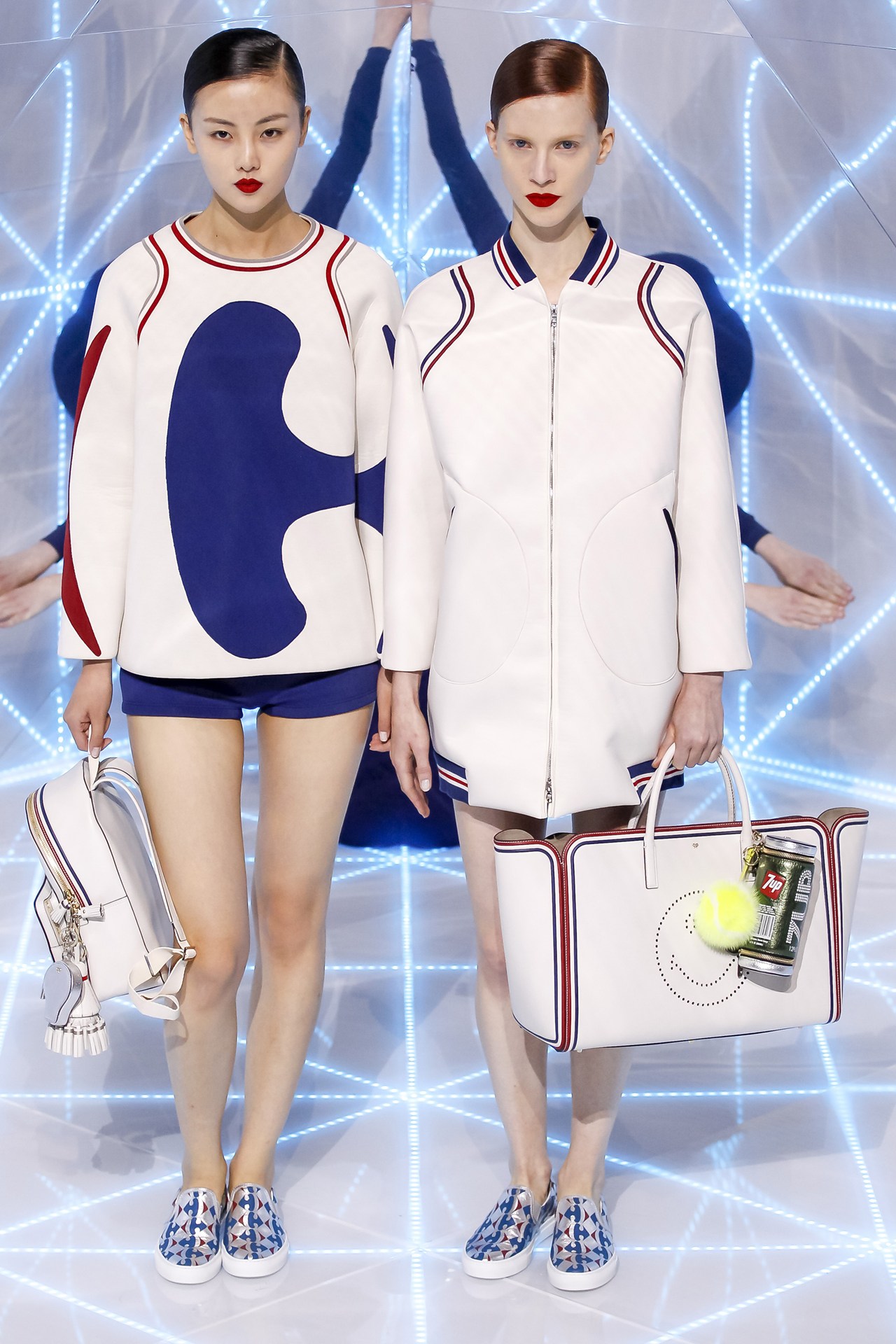 British handbag designer Anya Hindmarch does have a knack for turning the everyday, banal items into some fun, fashionable and most of all, luxurious. At first we had her take on Kellogg’s with her Fashion Flakes, then she took on household brands such as Daz, road traffic signs and a cheeky joke at the London ring-road the M25 and now we have her reimagining those famous British high street brands we grew up with. At first it started off with the familiar black stripes on white that are so reminiscent of John Lewis, the British high street department store, then she moved on to covering the building society Nationwide with their iconic logo on her clean white bags and emblazoned on coats and a swimsuit. Next was the turn of Mothercare, on what have got to be the most coveted bags for new mothers (I so want one!!!) and then her shift turned to the stationary and bookstore WHSmith, only she took on its main logo from the 1970’s. The final nod to the British high street was her take on the iconic pharmacy brand Boots. Overall, Anya has managed to take us back to our childhood by focusing on iconic brands as we knew them in our formative years, awhile at the same time showing her reverence to all things British. the colours are bold, clean and strong, the clothing sparse but beautifully made and the bags are as covetable as previous seasons. Overall she’s brought out a stomper of a collection.