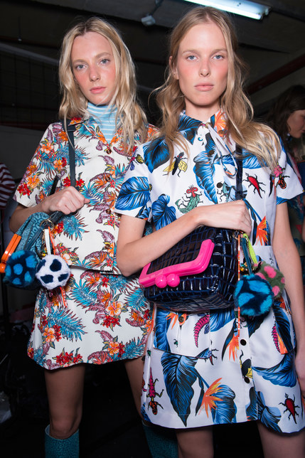 So what happens when mermaids go to a launderette to wash their tails and lounge around? Why the Sophia Webster spring/summer 2016 collection. Marine motifs graced nearly every aspect of her collection from her massively high platform sandals and punchy slogan bags to her signature print sandals decorated with coral accessories. This is a fun and irreverent collection from a master shoe and accessories designer with a playful eye